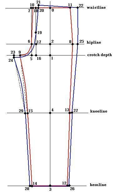Here is a detailed draft of trousers. With all measurements for standard body size pattern.